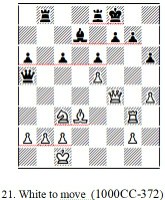 22. White to move (1000CC-373) 1. … Qe1! 2. Qxa8+ Kf7 resigns Ng4+ 4. hxg4 Qh4# |