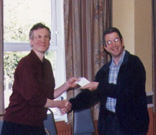 Tom Clarke (left picture) receiving his prize from Arbiter David McAlister