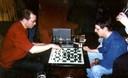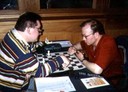 Michael Holmes shaking hands with English visitor Robert Payne before their Round 4 game which Michael won