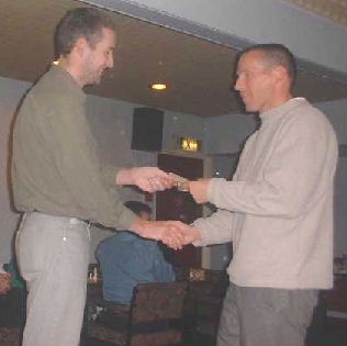 Receiving his prize from Stephen McCann