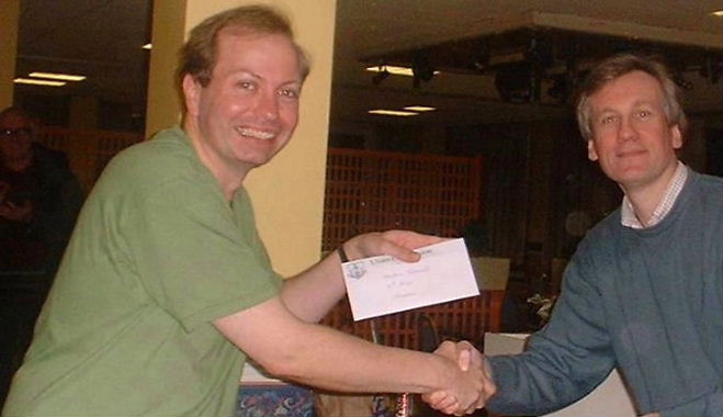 Stephen Scannell receiving his first prize in the Williamson Shield from UCU President David McAlister.