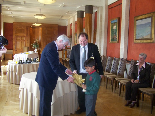 Brian Wilson MLA (Green Party) awarding the Young Exceptional Player 2008 to Raghav Gupta
