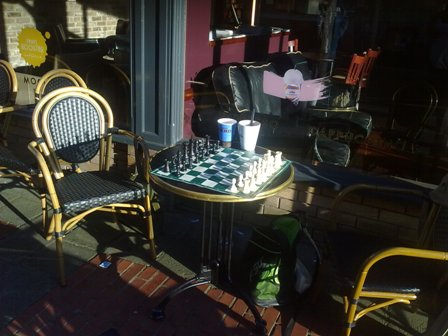 Cafe chess fun and social - a table waiting for you....at Cafe Nero