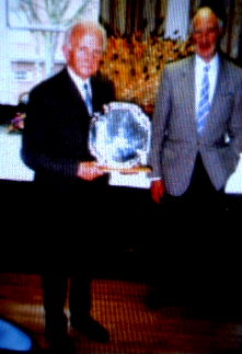 Presentation to Arthur Cootes at the 1997 QUB Open (pictured with Sam Lynn)